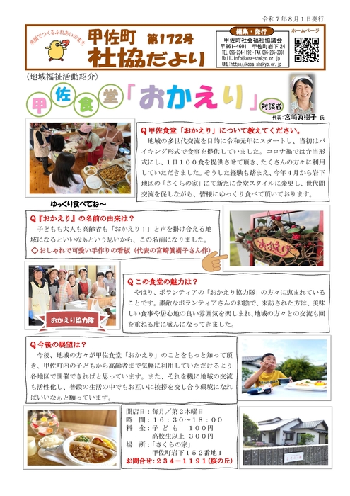 広報誌「社協だより」HOME > 広報誌「社協だより」 社会福祉協議会の活動の様子やお知らせなど、情報満載の広報誌をダウンロード、閲覧いただけます。 第172号 令和7年8月第171号 令和7年5月第170号 令和6年12月第169号 令和6年10月第168号 令和6年7月第167号 令和6年6月第166号 令和6年2月第165号 令和5年7月第164号 令和5年2月第163号 令和4年9月社協だより 第162号 令和4年2月発行P1(表紙)(607KB) P2(裏面)(646KB) 社協だより 第161号 令和3年11月発行P1(表紙)(430KB) P2(裏面)(360KB) 社協だより 第160号 令和3年8月発行P1(表紙)(494KB) P2(裏面)(318KB) 社協だより 第159号 令和3年5月発行P1(表紙)(267KB) P2(裏面)(525KB) 社協だより 第158号 令和2年11月発行P1(表紙)(433KB) P2(228KB) P3(684KB) P4(491KB) 社協だより 第157号 令和2年5月発行P1(表紙)(408KB) P2(497KB) P3(240KB) P4(692KB) 社協だより 第156号 令和元年10月発行P1(表紙)(529KB) P2(278KB) P3(435KB) P4(286KB) 社協だより 第155号 平成31年2月発行P1(表紙)(296KB) P2(276KB) P3(213KB) P4(277KB) 社協だより 第154号 平成30年8月発行P1(表紙)(345KB) P2(313KB) P3(219KB) P4(231KB) 社協だより 第153号 平成30年4月発行P1(表紙)(302KB) P2(262KB) P3(229KB) P4(169KB) 社協だより 第152号 平成29年11月発行P1(表紙)(447KB) P2(196KB) P3(224KB) P4(284KB) 善意のともしびP1(262KB) P2(130KB) P3(124KB) P4(150KB) 社協だより 第151号 平成27年7月発行P1(表紙)(359KB) P2(450KB) P3~P6(720KB) 社協だより 第150号 平成25年2月発行P1(表紙)(324KB) P2(214KB) P3(232KB) P4(262KB) ▼お気軽にお問い合わせくださいお問い合わせフォームはこちら